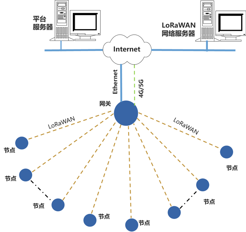 ? LoRaWAN網(wǎng)關(guān)通過Ethernet接口,或4G/5G,聯(lián)接云端LoRaWAN網(wǎng)絡(luò)服務器。