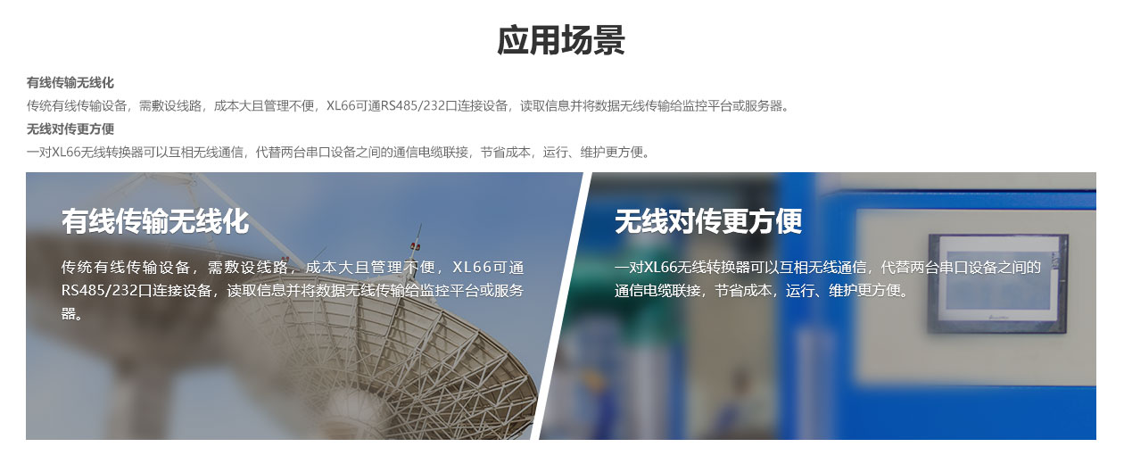 3、較遠(yuǎn)距離的串口通信,特別敷設(shè)電纜、光纖不便,施工成本高的場景,選擇XL6666串口無線轉(zhuǎn)換模塊,省成本、工期短,運(yùn)行、維護(hù)也更簡單方便。