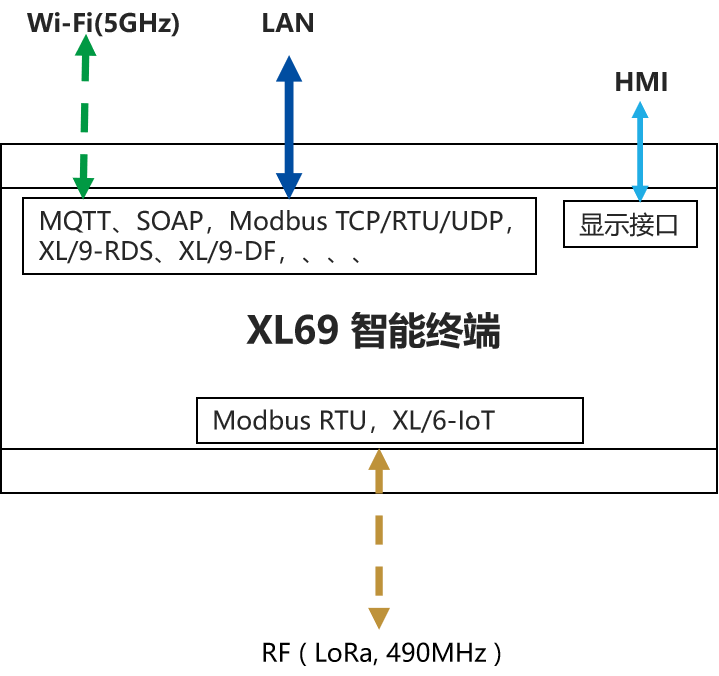 智能終端:XL69,協(xié)議轉(zhuǎn)換、數(shù)據(jù)處理、存貯;