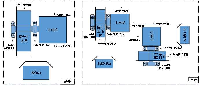 在主、副井提升機(jī)電機(jī)、減速箱本體上,按相關(guān)設(shè)備的技術(shù)要設(shè)置振動監(jiān)測點;