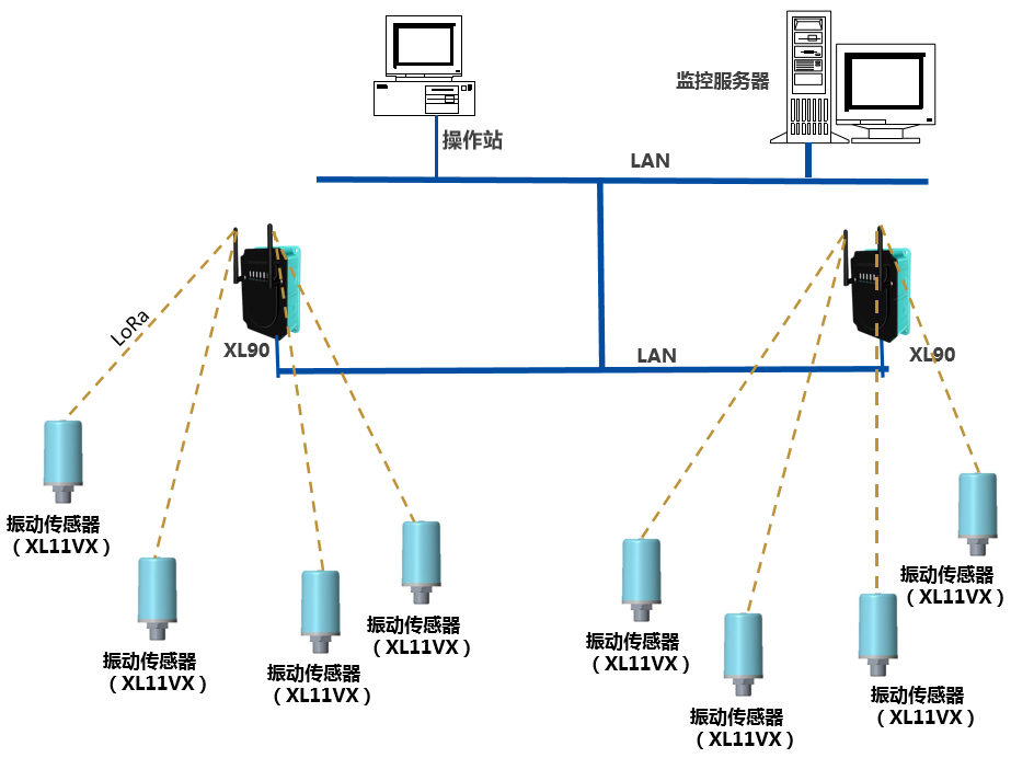 選擇XL90物聯(lián)網(wǎng)關(guān),讀取振動傳感器的數(shù)據(jù),通過局域網(wǎng)上傳數(shù)據(jù)至監(jiān)控服務(wù)器;