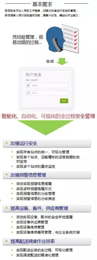 實(shí)時(shí)動(dòng)態(tài)掌握儲(chǔ)罐運(yùn)行數(shù)據(jù)、車輛罐體運(yùn)行數(shù)據(jù)、車輛行駛數(shù)據(jù)、客戶加氣數(shù)據(jù)、客戶用氣數(shù)據(jù)等;實(shí)現(xiàn)設(shè)備遠(yuǎn)程無線實(shí)時(shí)監(jiān)測(cè)、控制及運(yùn)行異常預(yù)警、報(bào)警等。