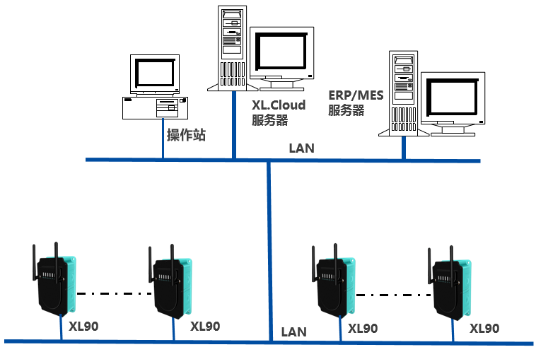 基于XIoT技術(shù)的貼片機(jī)電池電壓數(shù)據(jù)采集系統(tǒng),平臺由1套XL.Cloud軟件、1臺監(jiān)控服務(wù)器構(gòu)成;通信網(wǎng)絡(luò)多臺XL90物聯(lián)網(wǎng)關(guān),及LAN構(gòu)成。