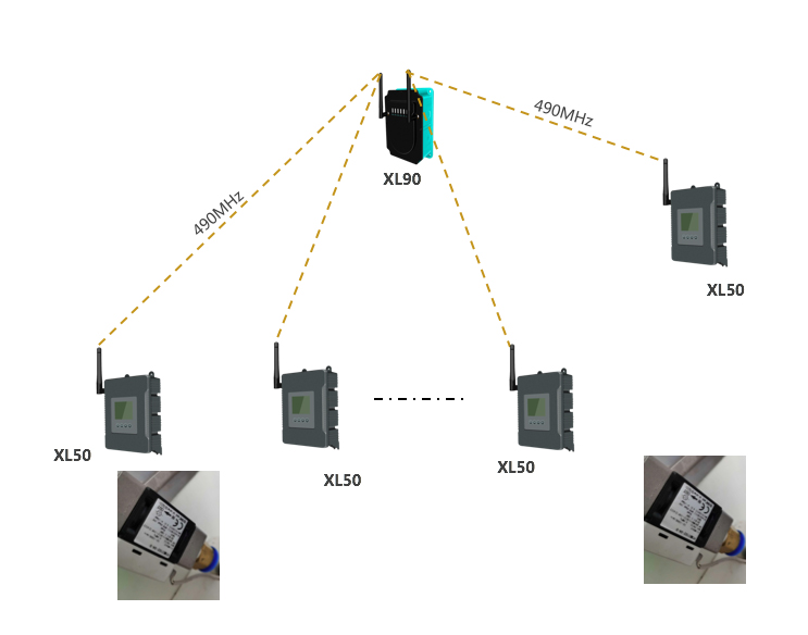 XL50通過無線,上傳瞬時流量、累積流量數(shù)據(jù)至XL90網(wǎng)關(guān)。