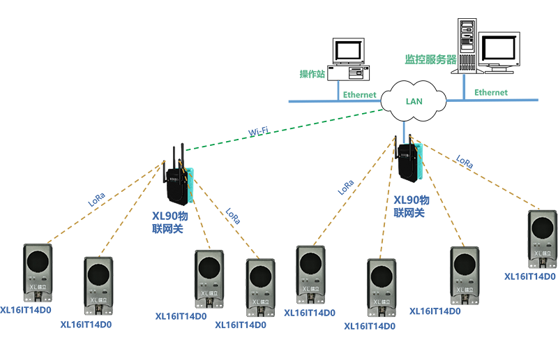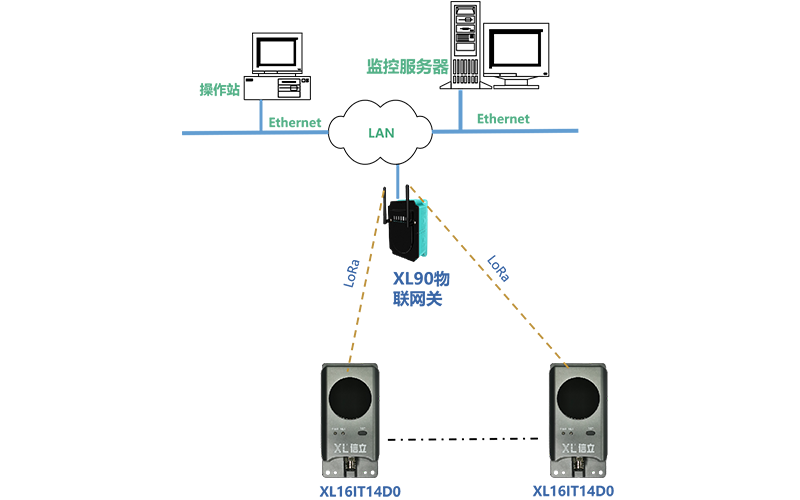 XL90或XL95物聯(lián)網(wǎng)關(guān)作為無線接收端,進行協(xié)議轉(zhuǎn)換,數(shù)據(jù)轉(zhuǎn)發(fā)。