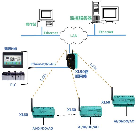 XL90或XL95物聯(lián)網(wǎng)關(guān)作為無線接收端,進行協(xié)議轉(zhuǎn)換,數(shù)據(jù)轉(zhuǎn)發(fā)。