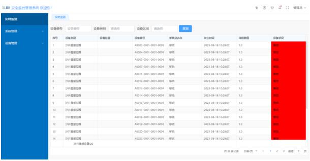 首頁實時顯示處于報警狀態(tài)的設(shè)備,設(shè)備當(dāng)前狀態(tài)、位置一目了然,管理人員根據(jù)監(jiān)測數(shù)據(jù)及時作出應(yīng)對處理,避免安全事故的發(fā)生。