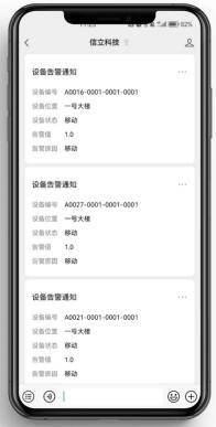 報警信息通過微信公眾號推送給管理人員,隨時隨地掌握現(xiàn)場設(shè)備動態(tài),無需通訊費(fèi)用,更省成本。