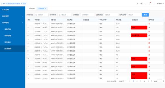 可篩選某個日期、設(shè)備編號、類別、區(qū)域的歷史數(shù)據(jù),一鍵導(dǎo)出為表格,便于分析、管理。
