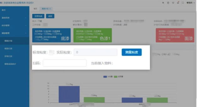 系統(tǒng)實時監(jiān)控調(diào)漆過程,指導操作員按照標準工藝流程進行調(diào)和,并實時檢測成品漆粘度是否達標,保障每次調(diào)漆作業(yè)的質(zhì)量穩(wěn)定可控,提前發(fā)現(xiàn)問題,降低生產(chǎn)成本。