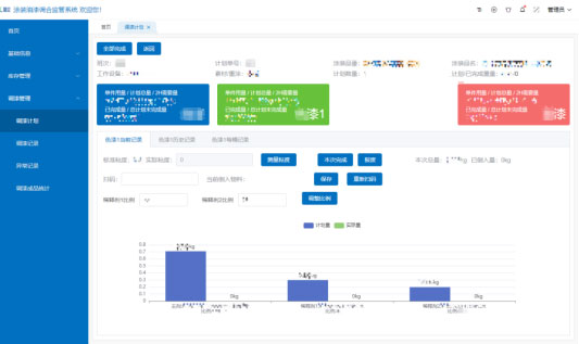 直觀可視化:以圖表方式,顯示所需漆料類別、重量,實(shí)時顯示調(diào)漆過程重量變化,調(diào)漆完成后自動記錄、保存此次調(diào)漆的數(shù)據(jù),并將數(shù)據(jù)上傳到服務(wù)器。