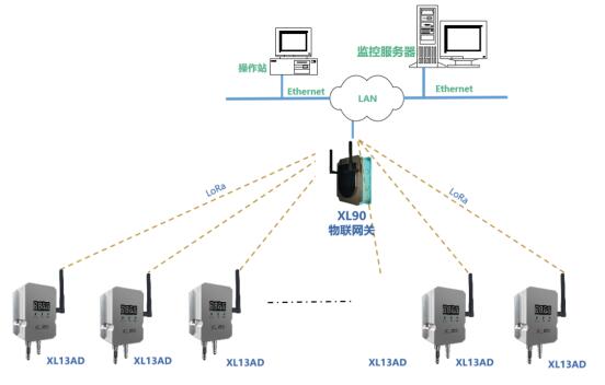 XL13AD無線大氣壓差傳感器采用LoRa無線通信模塊,將采集到的壓差數(shù)據(jù)無線傳輸至XL90網(wǎng)關;XL90網(wǎng)關通過局域網(wǎng)接入監(jiān)管服務器,或選擇XL97網(wǎng)關終端,實現(xiàn)就地監(jiān)控。