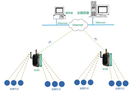 解決方案:XL90物聯(lián)網關無線讀取監(jiān)測節(jié)點的數據,進行處理、協(xié)議轉換,采用4G通信方式將數據直接推送至云平臺。