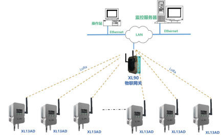 XL13AD無線壓差傳感器通過LoRa無線傳輸數(shù)據(jù)至XL906物聯(lián)網(wǎng)關(guān),網(wǎng)關(guān)可選Ethernet、Wi-Fi、4G等多種方式將壓差數(shù)據(jù)傳輸至監(jiān)控平臺(tái)。