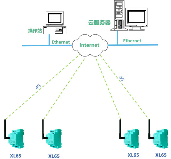 若距離偏遠(yuǎn)或設(shè)備較為離散,XL65無線采集器可采用4G通信方式,直接將數(shù)據(jù)接入云平臺(tái)。
