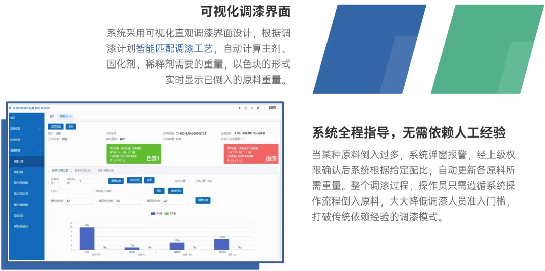 在傳統(tǒng)的調(diào)漆和制漆過(guò)程中,過(guò)于依賴個(gè)人經(jīng)驗(yàn)技能,靠師傅帶徒弟的方式培訓(xùn),人為因素容易導(dǎo)致調(diào)漆質(zhì)量不穩(wěn)定、風(fēng)險(xiǎn)大;漆料選用、使用、調(diào)漆操作等都依賴人工記錄,導(dǎo)致質(zhì)量問(wèn)題無(wú)法追溯、漆料浪費(fèi)大、統(tǒng)計(jì)數(shù)據(jù)不準(zhǔn)確等問(wèn)題。