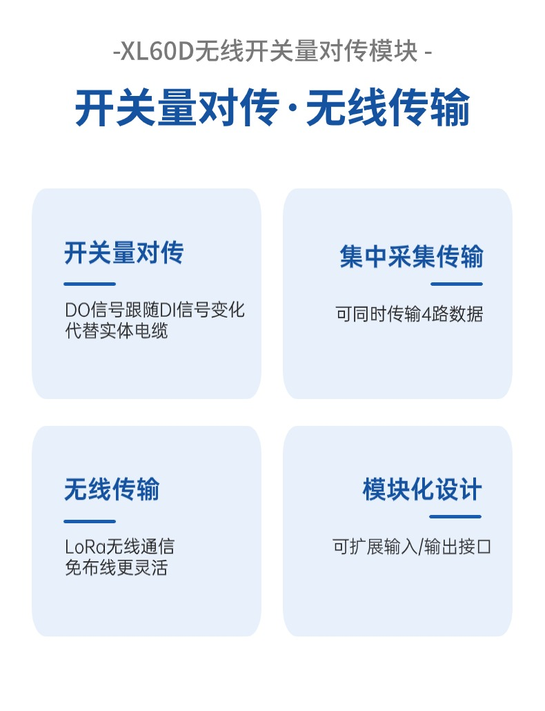 選擇XL60D無線開關(guān)量對傳模塊,接收控制儀表的開關(guān)量信號、輸出開關(guān)量信號控制生產(chǎn)設(shè)備啟停。